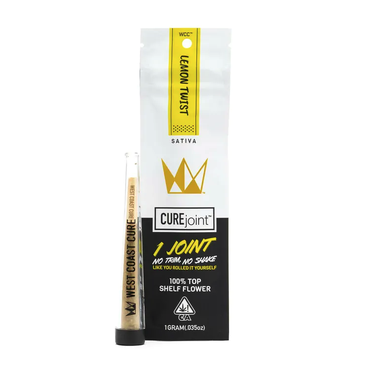West Coast Cure is stoked to roll out their Lemon Twist CUREjoint, a Sativa-dominant hybrid smoke that’s worthy of your wake-and-bake morning sesh. Packed with flavors of lemon and pine, this joint of twisted citrus provides an aroused and cerebral high from its resin encrusted flowers.